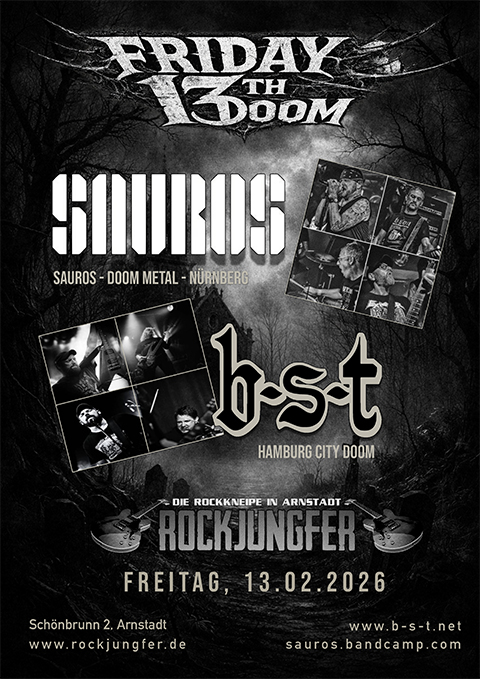 ihre gemeinsame musikalische Schnittmenge auszuloten: langsam, tief und hart! Unter dem Namen SAUROS erschaffen sie explizit simplen, riff-lastigen und wuchtigen Doom